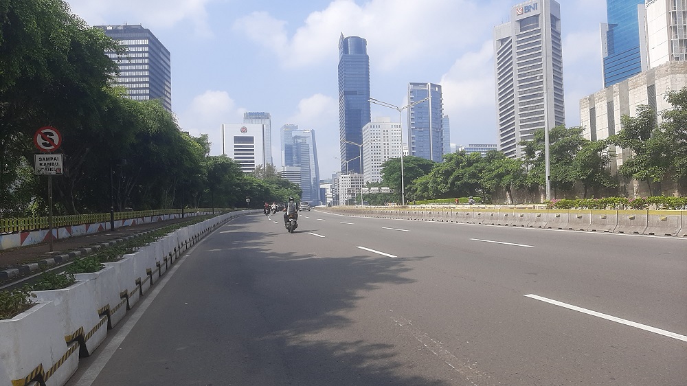 Sementara itu, di Jalan Jenderal Sudirman, MH Thamrin dan disekitar Jalan Suwiryo, hingga Jalan Gatot Subroto kondisinya begitu lengang. Volume lalu lintas mulai terlihat meningkat pada siang hari.