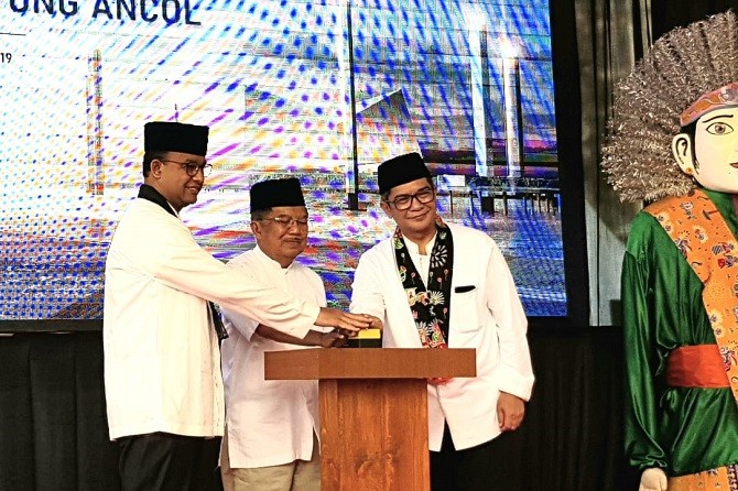 JawaPos.com - Pembangunan Masjid Apung Ancol di Pantai Ria Ancol, Jakarta Utara resmi dimulai. Sabtu (9/11) sore, Gubernur DKI Jakarta Anies Baswedan bersama Ketua Dewan Masjid Indonesia (DMI) Jusuf Kalla meletakkan batu pertama (groundbreaking) pembangunan tempat ibadah tersebut.