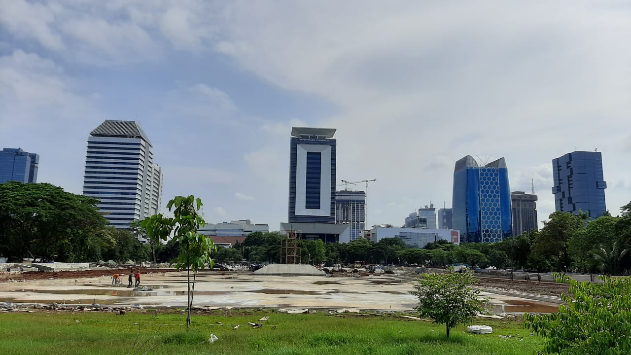 Proses pengerjaan Plaza Selatan Monas, Jakarta. (Sabik Aji Taufan/ JawaPos.com)