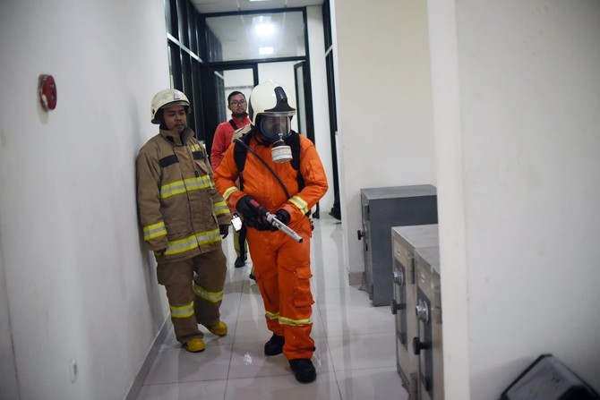 Petugas menyemprotkan cairan disinfektan di Taman Burung, Taman Mini Indonesia Indah (TMII), Jakarta Timur, Rabu (18/3/2020). Penyemprotan disinfektan tersebut guna mengantisipasi penyebaran COVID-19. Foto: Dery Ridwansah/ JawaPos.com