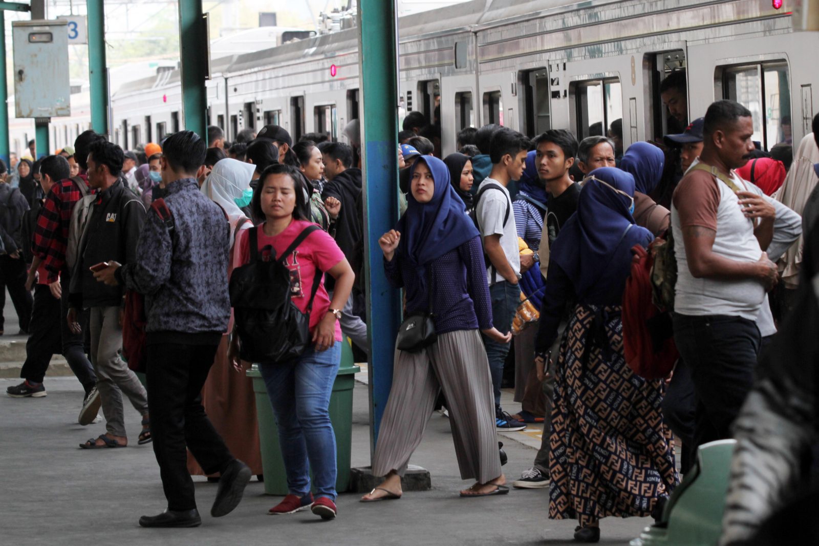 Penumpang KRL saat menunggu kereta di Stasiun Manggarai, Jakarta, Rabu (9/10/2019). Stasiun Manggarai bakal mengambil alih peran Stasiun Gambir sebagai persinggahan dan persimpangan utama kereta terutama jarak jauh di DKI Jakarta mulai 2021. Foto: Dery Ri