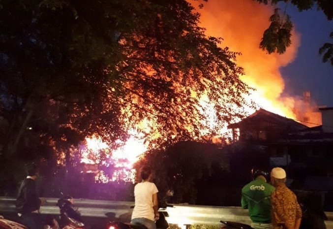 Kebakaran rumah tinggal di Kelurahan Pegangsaan, Menteng, Jakarta Pusat, pada Senin (1/6). Sudin Gulkarmat Jakarta Pusat/Antara