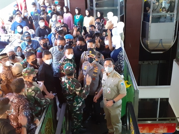 JawaPos.com - Gubernur DKI Jakarta Anies Baswedan melakukan peninjauan ke Pasar Tanah Abang, Jakarta Pusat, Minggu (2/5) siang. Hal ini dilakukan setelah diketahui adanya lonjakan pengunjung pada Sabtu (1/5) kemarin.
