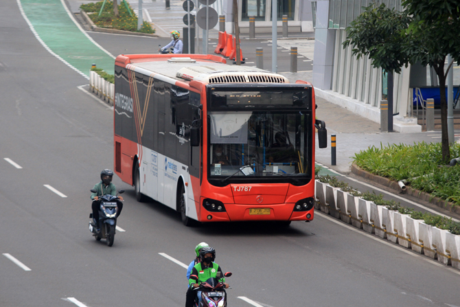 Penumpang mengantre di halte TransJakarta Tosari, Jakarta, Jumat (10/5/2022). Usai berakhirnya libur lebaran juga seiring berjalannya aktivitas perkantoran, penumpang bus TransJakarta membludak saat jam pulang kerja. Foto: Dery Ridwansah/ JawaPos.com