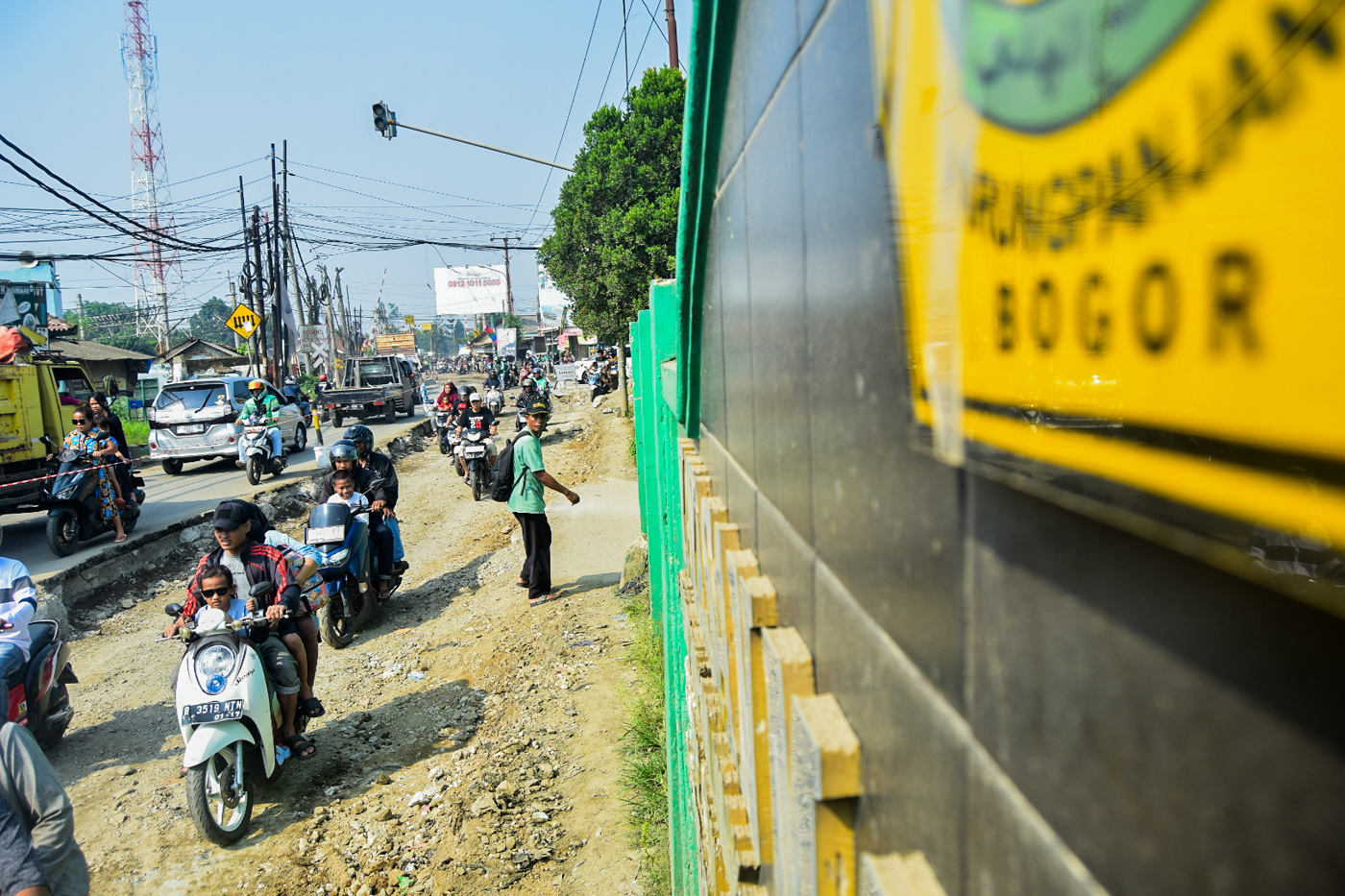 Ratusan massa melakukan aksi damai demontrasi terkait polemik truk tambang di Cigudeg, Bogor, Jawa Barat, Senin (29/9/2025). (Dery Ridwansah/ JawaPos.com)