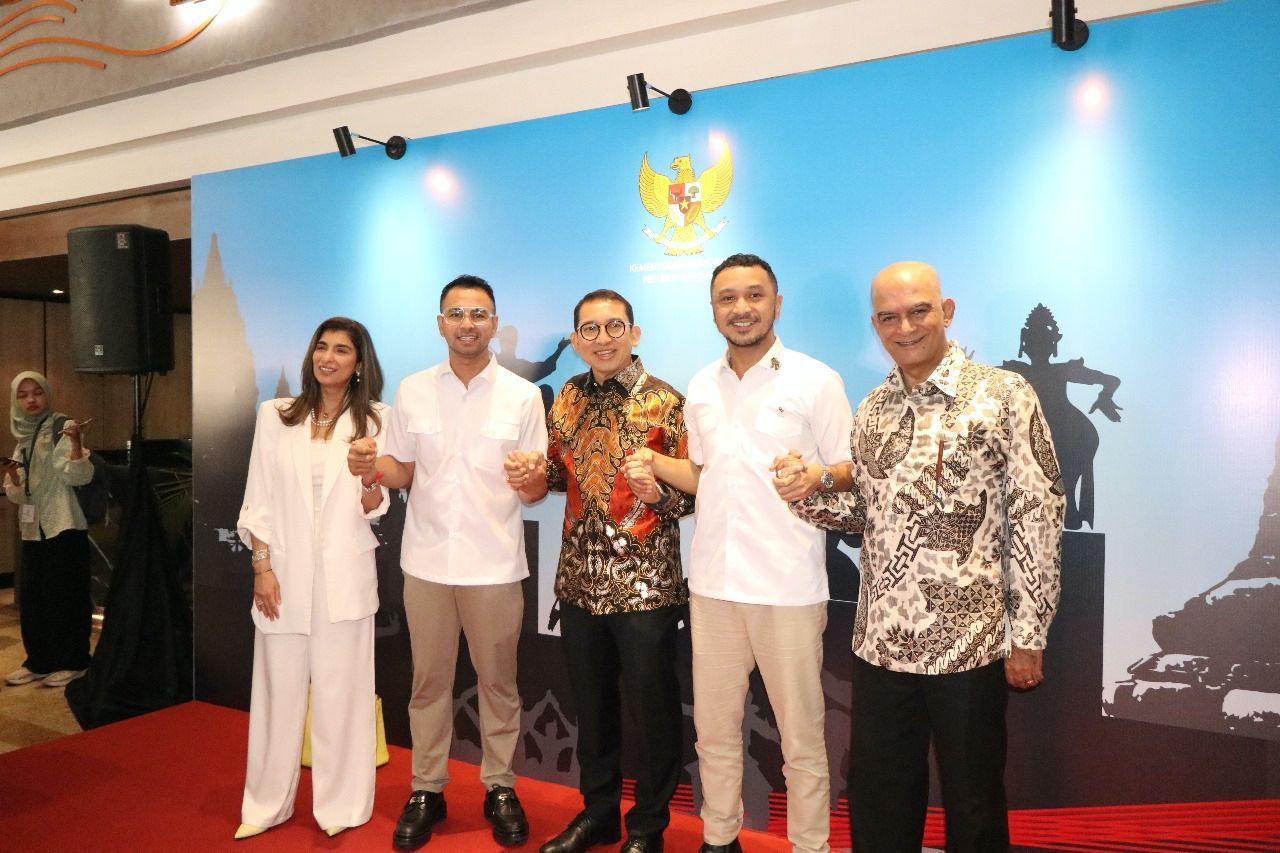 LUASKAN JANGKAUAN: Fadli Zon (tengah) menerima Raffi Ahmad (dua dari kiri) dan delegasi Sam’s Studio di Kantor Kementerian Kebudayaan, Jakarta, Senin (25/11). (HUMAS KEMENTERIAN KEBUDAYAAN)