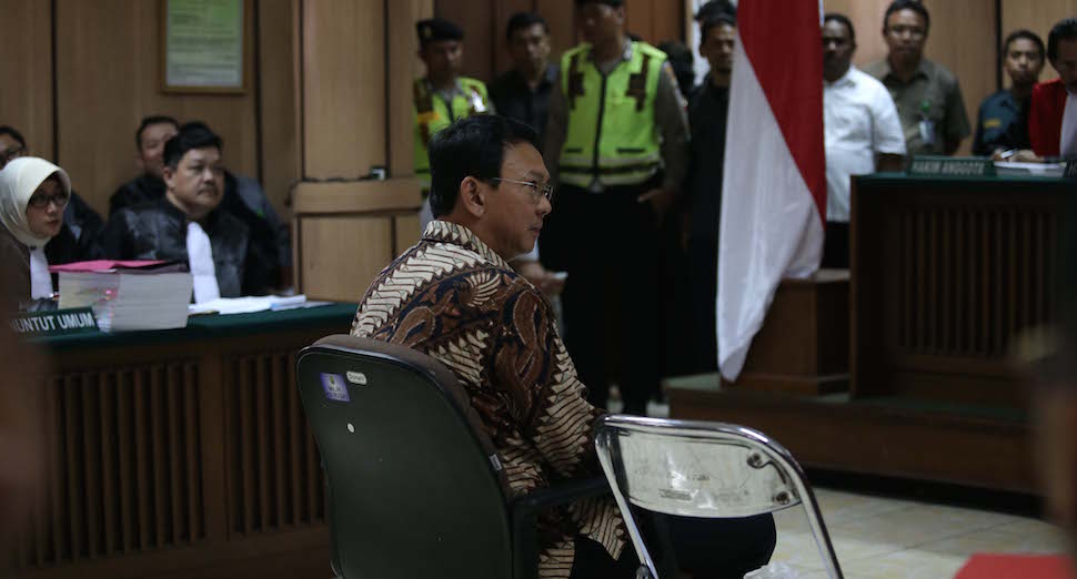 Basuki Tjahaya Purnama alias Ahok saat sidang penistaan agama