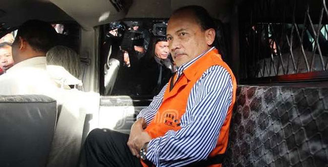Budi Mulya dalam mobil tahanan Komisi Pemberantasan Korupsi. - Image