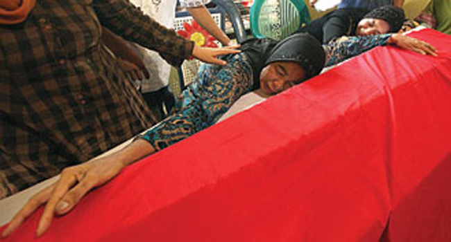 30 Polisi Kejar Penembak Serka Sainudin. Tampak peti jenazah almarhum.