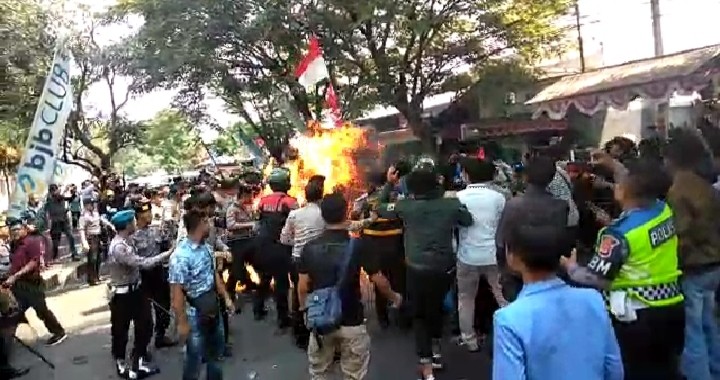 Aksi demonstrasi berujung 3 polisi terbakar. (Istimewa)