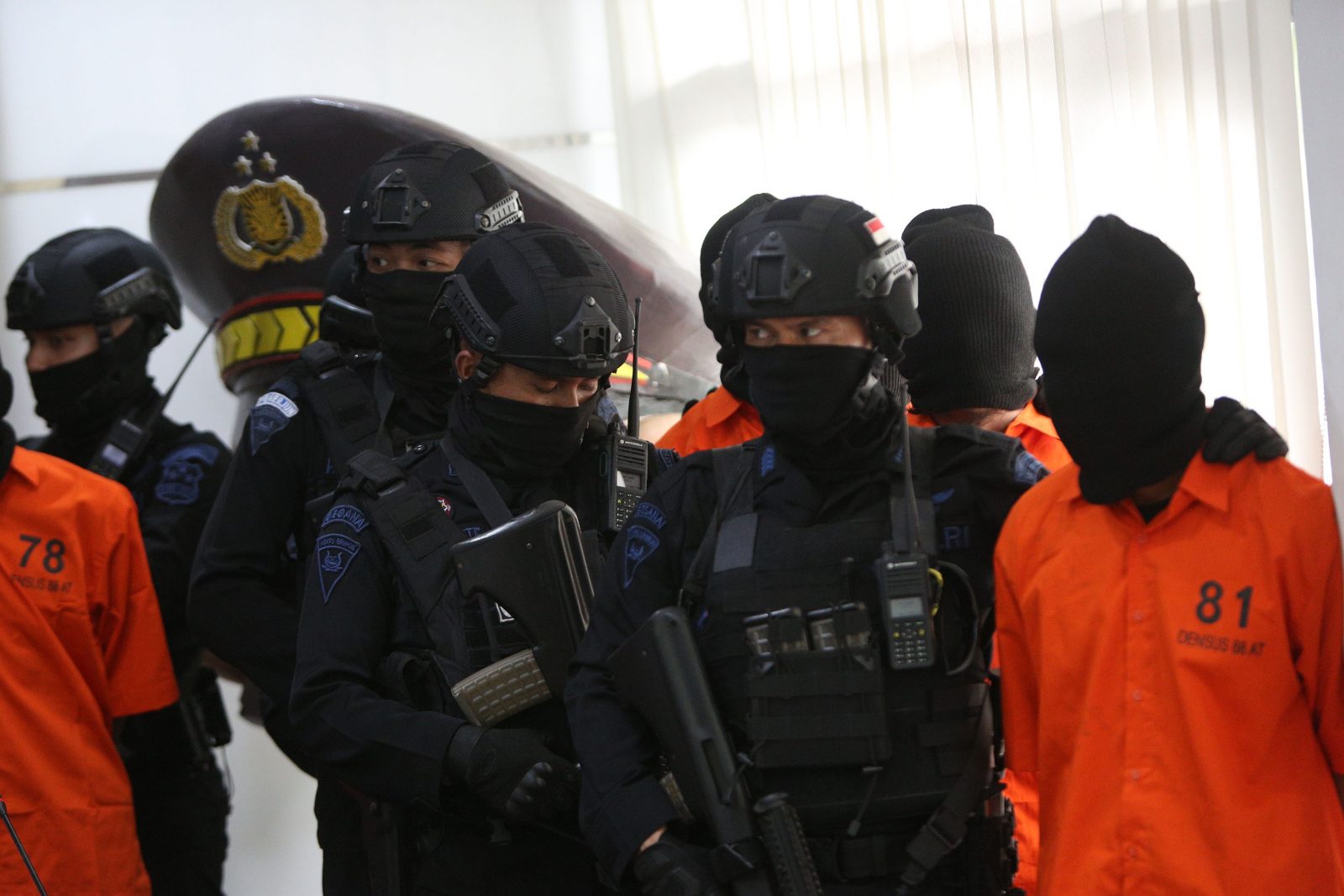 TERORIS: Mabes Polri mengungkap penangkapan tersangka terduga terorisme olehDensus 88, beberapa waktu lalu. (Miftahul Hayat/ Jawa Pos)