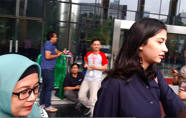 Faye tampak menyelesaikan pemeriksaannya sekitar pukul 17.00 WIB. Dia tampak menggunakan baju kemeja berwarna biru tua dengan didampingi seorang wanita berkrudung saat keluar dari Gedung KPK.