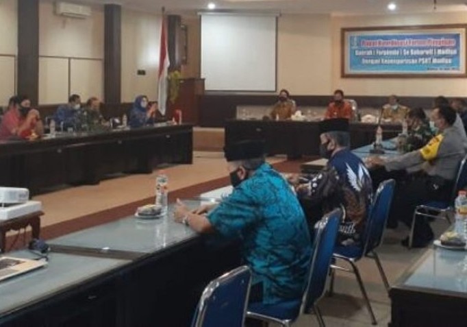 Ilustrasi Forkopimda se-Bakorwil Madiun melakukan rapat koordinasi menjelang sidang putusan konflik kepengurusan Yayasan SHT di PN Kota Madiun pada Selasa (16/6). Istimewa/Antara