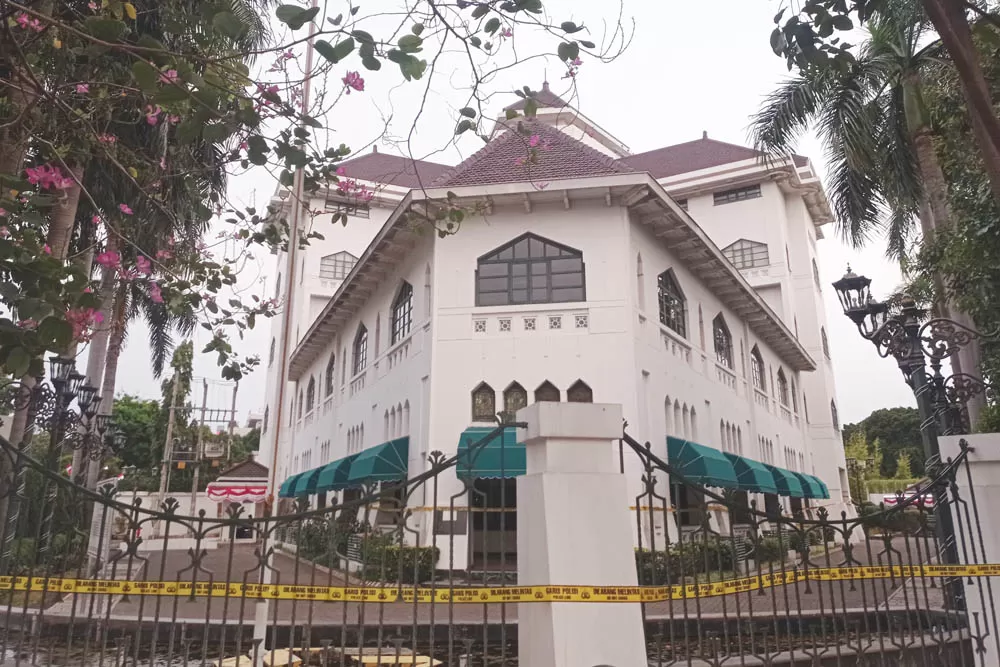 Gedung Graha Wismilak di Jalan Raya Darmo No. 36-38 yang kini menjadi objek sengketa antara Polda Jatim dengan PT Wismilak Inti Makmur Tbk. (SURYANTO/RADAR SURABAYA)