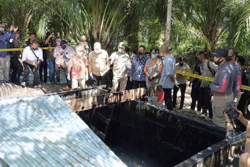 Kapolda Riau Irjen Pol Agung Setya Imam Effendi meninjau langsung kilang penyulingan minyak mentah ilegal yang berhasil diungkap jajarannya di Kota Dumai, Minggu (19/7/2020).