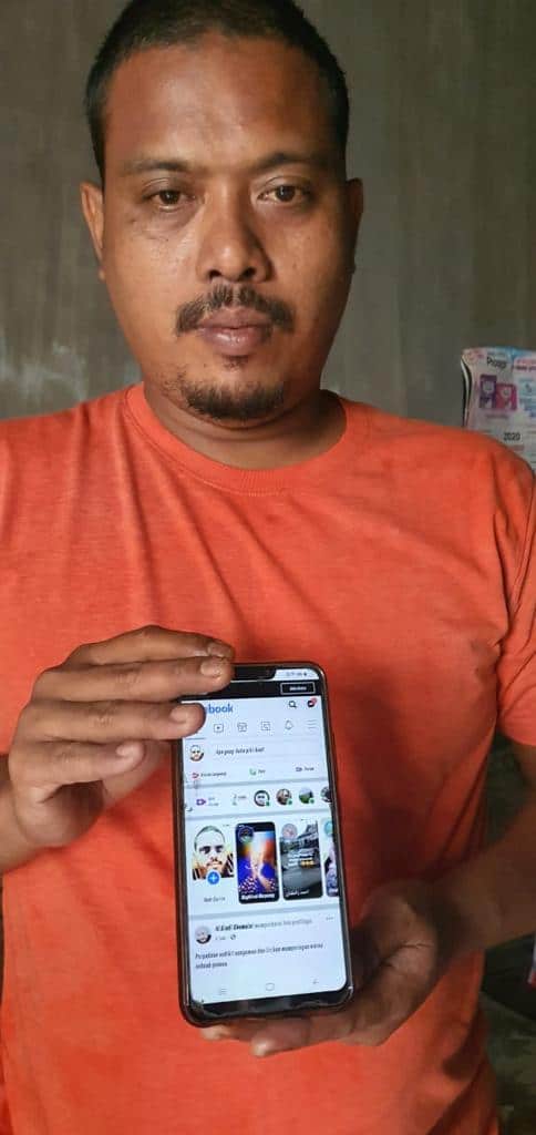 Saat didatangi petugas, SM terlihat mengenakan kaos warna oranye dan celana training warna biru dongker. Saat duduk di ruang tamu, petugas menunjukan surat perintah penangkapan. SM juga sempat difoto sambil memegang telepon genggam yang di dalamnya ada aplikasi facebook.
