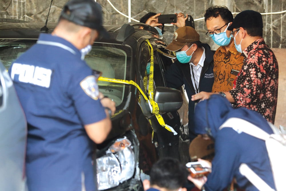 CROSS CHECK: Tim Komnas HAM memeriksa mobil yang digunakan polisi dan laskar FPI saat insiden bentrok di tol Jakarta-Cikampek. Pemeriksaan berlangsung di Polda Metro Jaya, Jakarta, Senin (21/12). (SALMAN TOYIBI/JAWA POS)