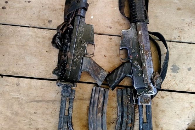 JawaPos.com–Dua senjata api jenis SS1 V1 milik Polri yang diambil sekelompok orang tak dikenal di Polsubsektor Oksamol, Kabupaten Pegunungan Bintang, Papua, pada Rabu (2/5), ditemukan di rumah singgah. Lokasi rumah singgah tersebut terletak di perbatasan RI-PNG.