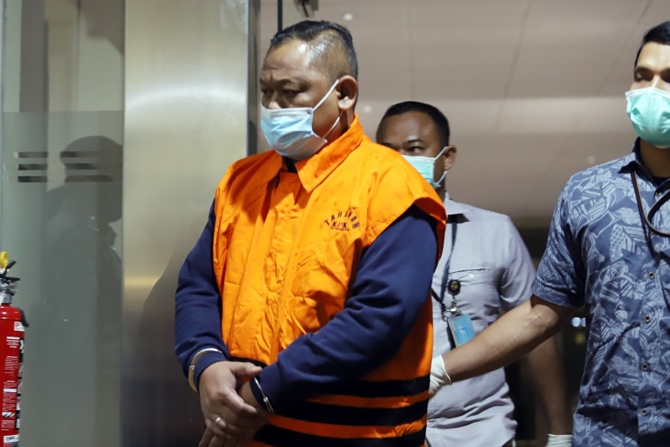 Pejabat Pembuat Komitmen di Kementerian Sosial Matheus Joko Santoso usai diperiksa di gedung KPK, Jakarta, Minggu (6/12/2020). Matheus Joko Santoso ditahan penyidik KPK usai terjaring dalam operasi tangkap tangan perkara dugaan suap pengadaan bantuan sos