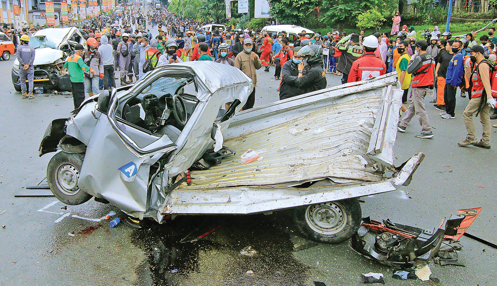 Ali berusaha menghindari mobil di depannya dengan membanting setir ke kiri. Setelah berhasil, truknya kembali lagi ke jalur kanan dan menyeruduk puluhan kendaraan. ”Setelah menyeruduk, truk masih terus melaju dan terhenti menabrak pembatas jalan berjarak sekitar 50 meter dari titik benturan,” jelas Kapolda Kaltim Irjen Pol Imam Sugianto.