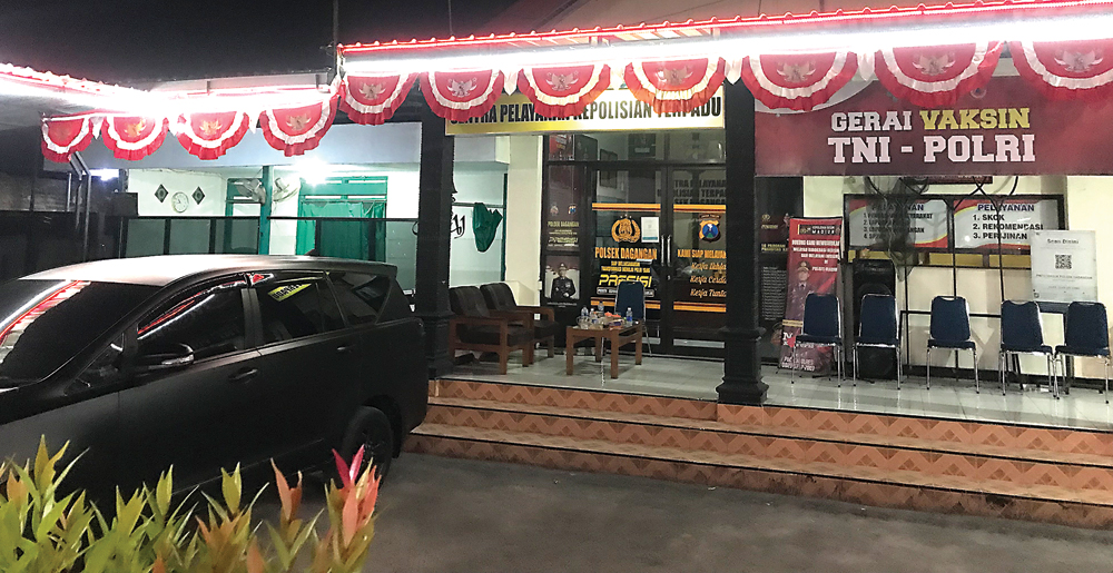 LENGANG: Suasana Mapolsek Dagangan, Madiun, (15/9). Pemuda setempat yang diduga terkait Bjorka sempat diamankan di Mapolsek Dagangan sebelum dibawa ke Mabes Polri. (R. BAGUS RAHADI/JAWA POS RADAR MADIUN)
