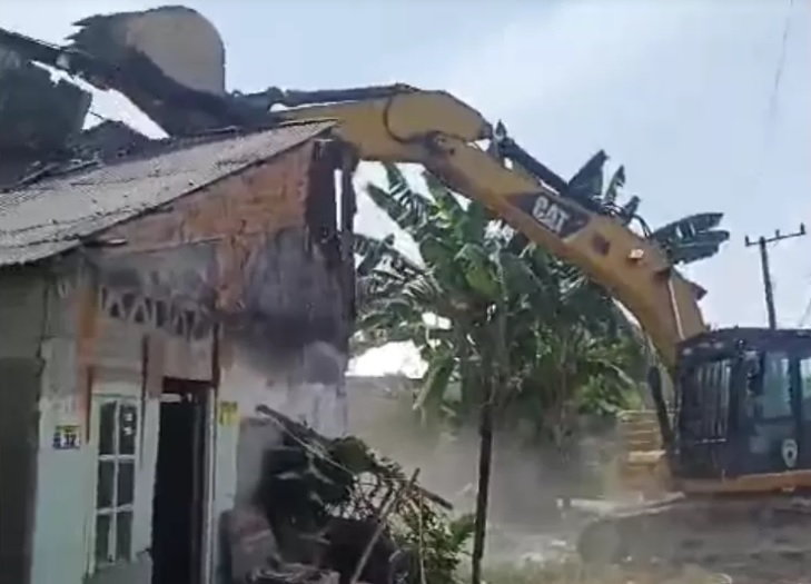 Rumah siswa SMK kelas 3 yang merupakan pembunuh 5 orang sekeluarga di Penajam Paser Utara (PPU) dihancurkan dan diratakan dengan tanah.