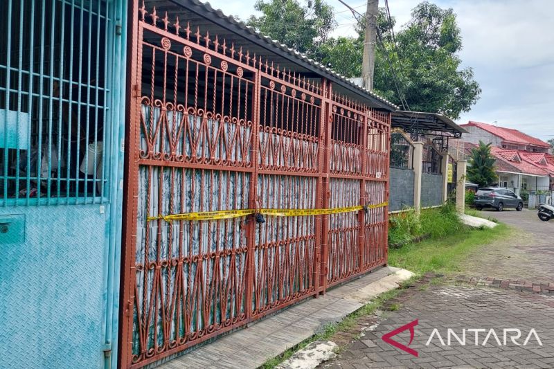 Rumah korban tewas yang terdiri empat orang merupakan sanak saudara, dipasang garis polisi di Perumahan Citra Satu Kalideres, Jakarta Barat, Jumat (11/11/2022). (ANTARA/Walda Marison)