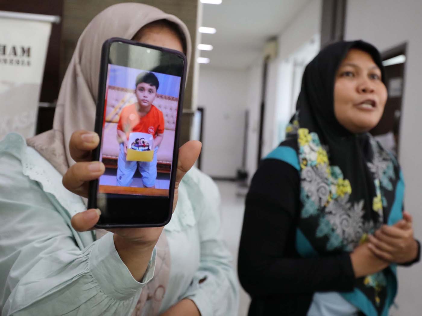 Ibunda Afif Maulana, Anggun Andriani bersama keluarga dan kuasa hukum memberikan keterangan kepada wartawan usai melakukan audiensi di kantor Komnas HAM, Jl Latuharhary, Jakarta, Senin (1/7/2024).
