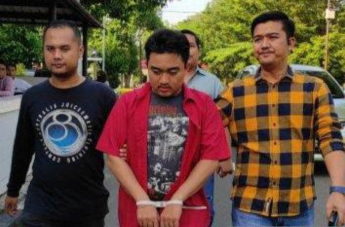 Mus Muliadji alias Aji (tengah) saat diamankan Polda Sumut karena terlibat perdagangan organ tubuh manusia. (Aris/Antara)