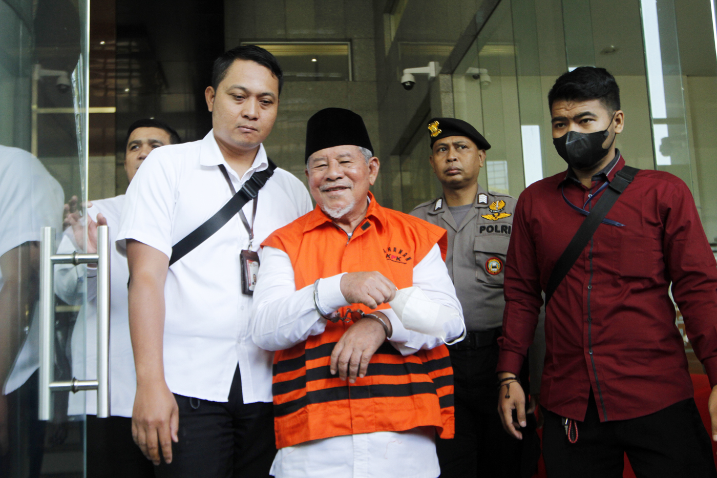 Gubernur Maluku Utara Abdul Gani Kasuba berjalan dengan kawalan petugas usai ditetapkan sebagai tersangka kasus dugaan korupsi terkait proyek infrastruktur di Gedung Merah Putih KPK, Jakarta, Rabu (20/12/2023).