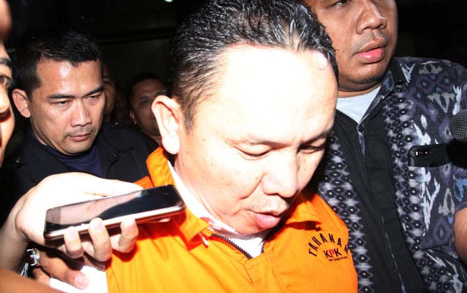 Bupati Halmahera Timur Rudy Erawan saat akan dimasukkan ke dalam Rutan KPK, Jakarta Senin (12/2)I