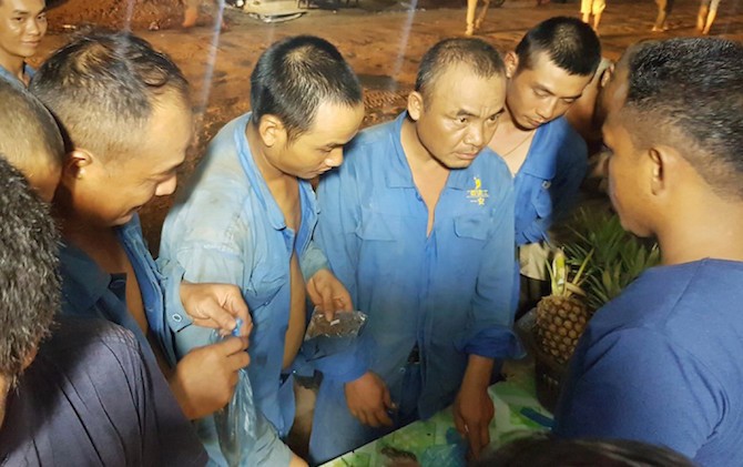 Sejumlah Tenaga Kerja Asing (TKA) berbelanja pada saat jam istirahat di Desa Morosi, Kab. Konawe, Sulawesi Tenggara, Jumat (30/11/2016)
