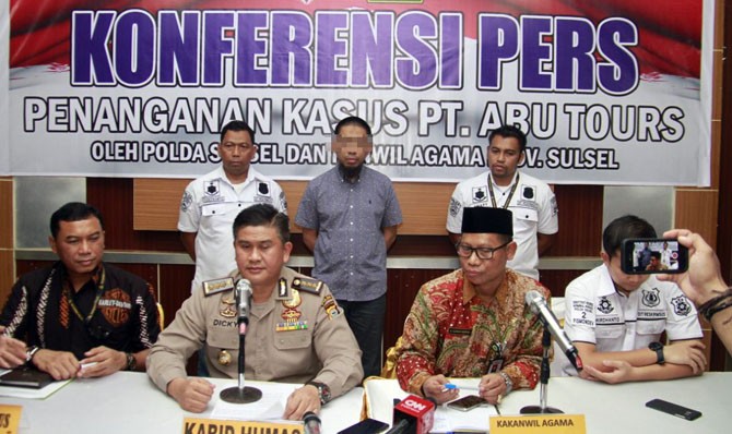 "Direktur Utama Abu Tours Hamzah Mamba resmi kita tetapkan sebagai tersangka mulai hari ini, dalam kasus dugaan penipuan dan penggelapan, juga tindak pidana pencucian uang (TPPU) perusahaan Abu Tours and Travel," ungkap Kabid Humas Polda Sulsel, Kombes Dicky Sondani dalam ekspose kasus penetapan tersangka di Mapolda Sulsel, Jalan Perintis Kemerdekaan, Jumat (23/3).