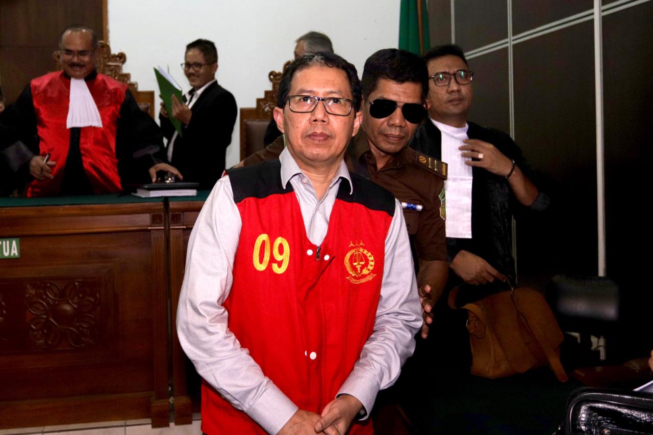 Mantan Plt Ketua Umum PSSI, Joko Driyono divonis satu tahun dan enam bulan penjara dalam sidang putusan kasus perusakan barang bukti dugaan pengaturan skor, Selasa (23/7/2019). (Dery Ridwansah/ JawaPos.com)