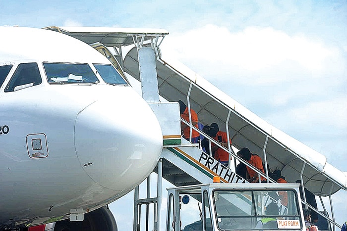 Radar Lampung melaporkan bahwa 23 tahanan itu dibawa dari Mako Brimob Polda Lampung ke Bandara Radin Inten II Lampung sekitar pukul 09.20 dan terbang pukul 11.00. Polisi menerapkan pengamanan yang ketat. Tangan para terduga teroris diborgol. Kaki mereka dirantai. Selain itu, mereka memakai baju tahanan dan penutup wajah.