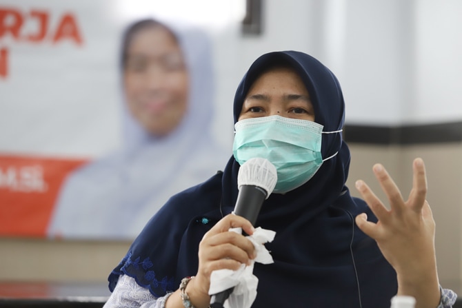 Anggota Komisi IX DPR RI Fraksi PKS, Kurniasih Mufidayati memberikan pemaparan terkait beberapa hal kondisi pandemi Covid-19 saat kunjungan kerja di masa reses di Jakarta, Sabtu (6/3/2021). Pandemi Covid-19 yang tak kunjung mereda meski telah setahun, Kur