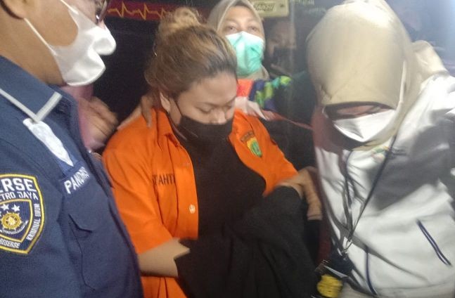 Penyidik Polda Metro Jaya tahan anak penyanyi Nia Daniaty, Olivia Nathania (baju oranye) setelah diperiksa sebagai tersangka kasus dugaan penipuan bermodus rekrutmen CPNS di Mapolda Metro Jaya, Kamis (11/11). Fianda Sjofjan Rassat/Antara