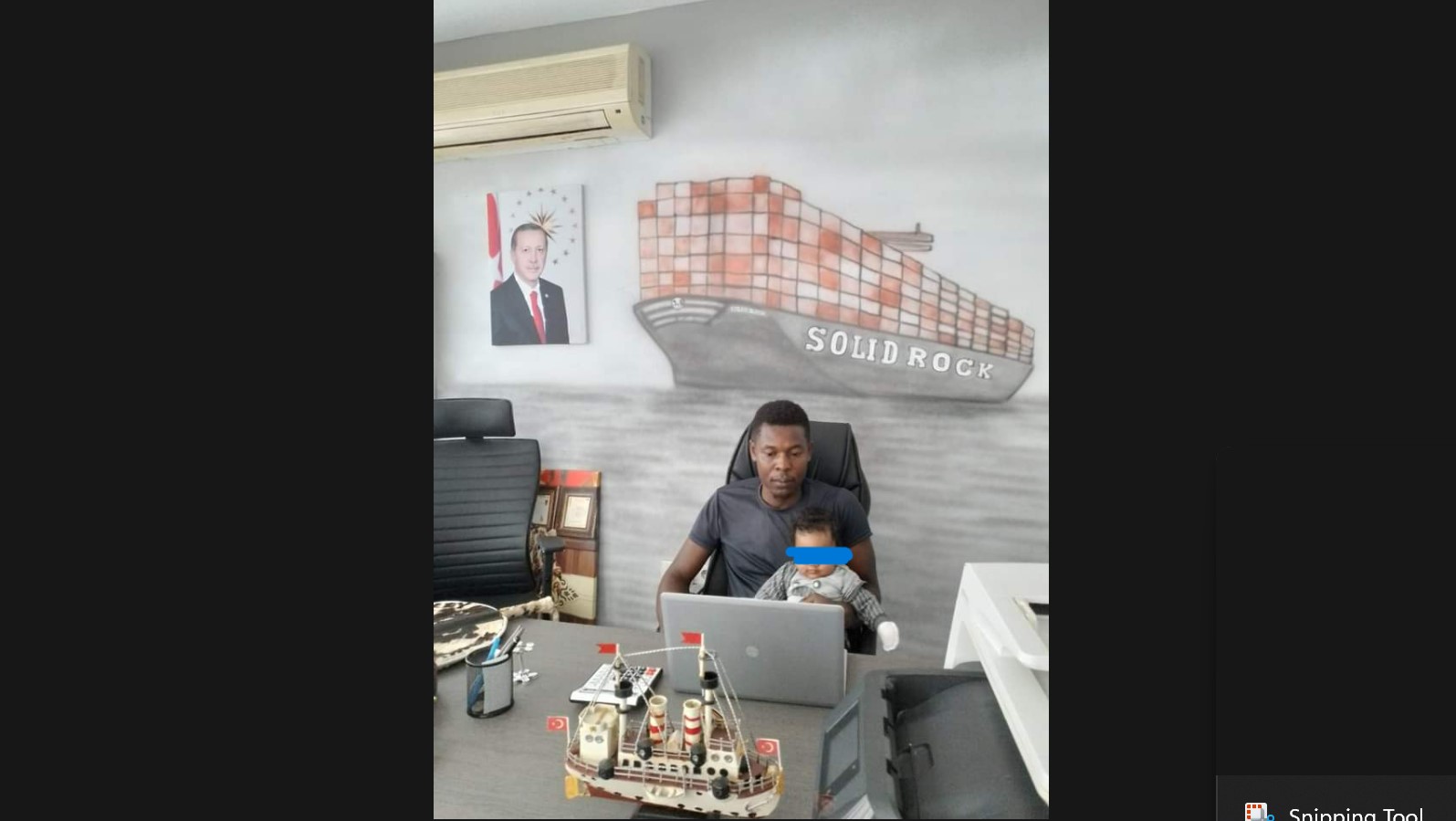 Mr. Emeka Paul berpose di kantor bodong miliknya. (Istimewa).