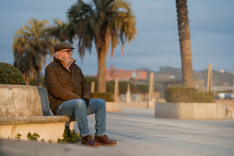 Seorang pria duduk sendirian dengan pandangan kosong, mencerminkan perasaan pasrah dan ketidakbahagiaan yang tersembunyi./Freepik