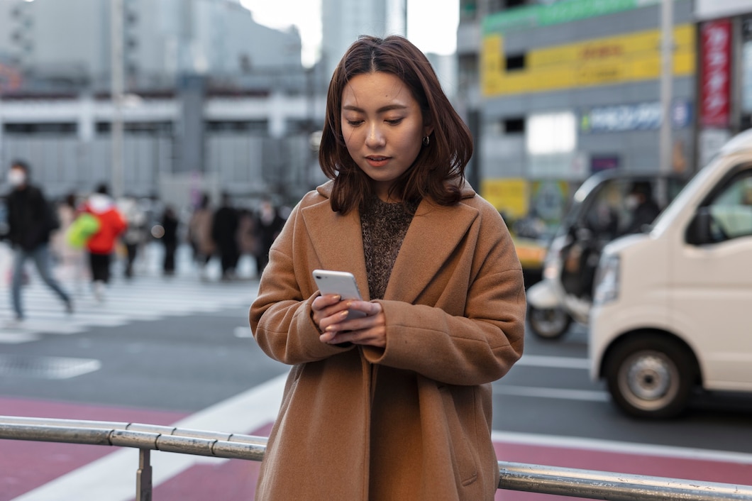 Ilustrasi seseorang yang sedang melihat ponselnya dengan tatapan kosong di tempat umum, menunjukkan kelelahan mental./Freepik.