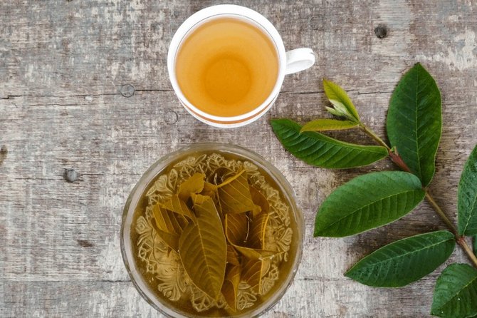 Daun jambu biji kaya akan antioksidan dan tanin. Daun jambu biji juga memiliki sifat anti-inflamasi dan sifat antibakteri. Daun jambu biji ketika diseduh menjadi rebusan akan melepaskan vitamin C dan flavonoid seperti quercetin yang berguna untuk menjaga kesehatan. Selain itu juga bisa digunakan sebagai pereda nyeri alami.