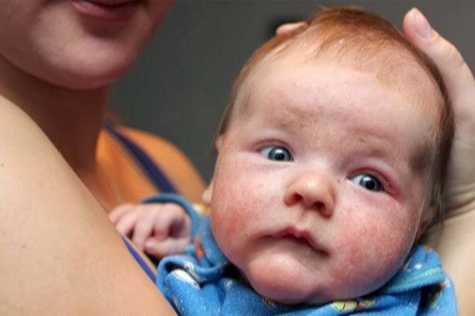 Lokasi klasik pada usia anak adalah lipat siku, lipat lutut, seputar bibir atau mata dan pipi. Yang perlu diperhatikan, penderita DA biasanya memiliki gejala penyerta seperti hidung meler atau bersin pada pagi hari (rhinitis allergica), mata merah (Conjunctivitis allergica), dan asma.