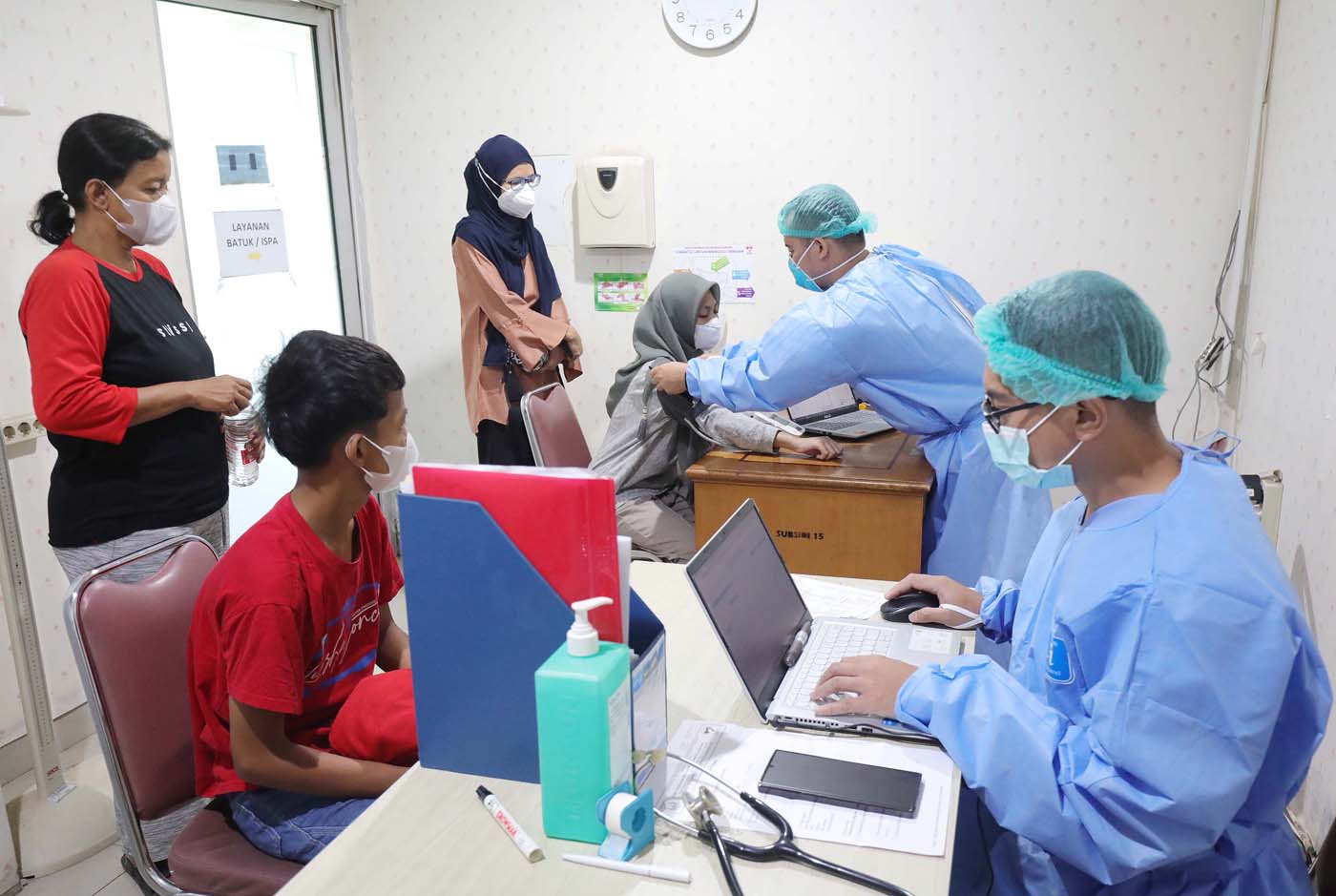 Dokter di Puskesmas Cilincing, Jakarta Utara, pada Selasa (22/8/2023), memeriksa pasien ISPA akibat polusi udara di Jakarta