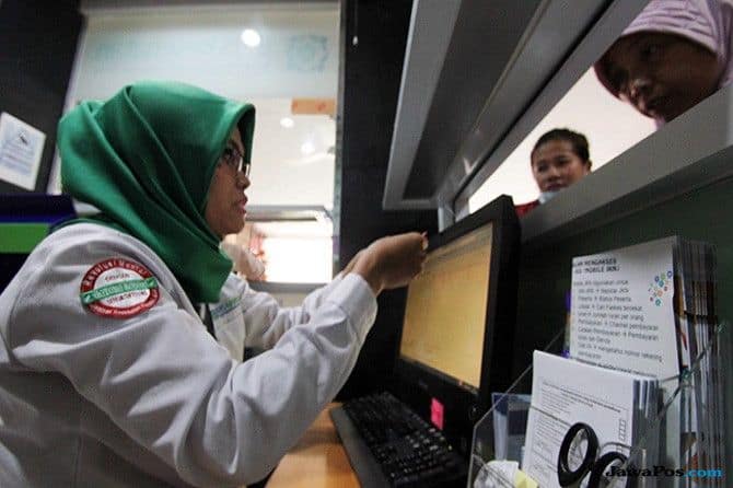 LUSTRASI: Petugas loket BPJS Kesehatan tengah melayani anggota di kantor BPJS Jakarta, belum lama ini.