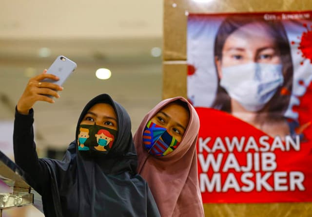 Ilustrasi warga mengenakan masker di pusat perbelanjaan