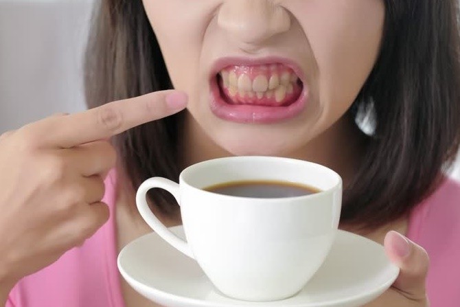 Ilustrasi gigi menguning karena sering minum kopi - Image