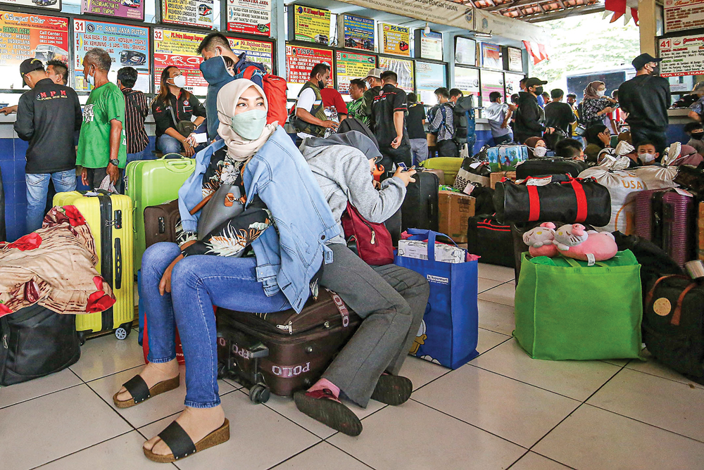 MENUJU PUNCAK MUDIK: Calon penumpang memadati Terminal Kampung Rambutan, Jakarta Timur, kemarin (27/4). (MIFTAHULHAYAT/JAWA POS)