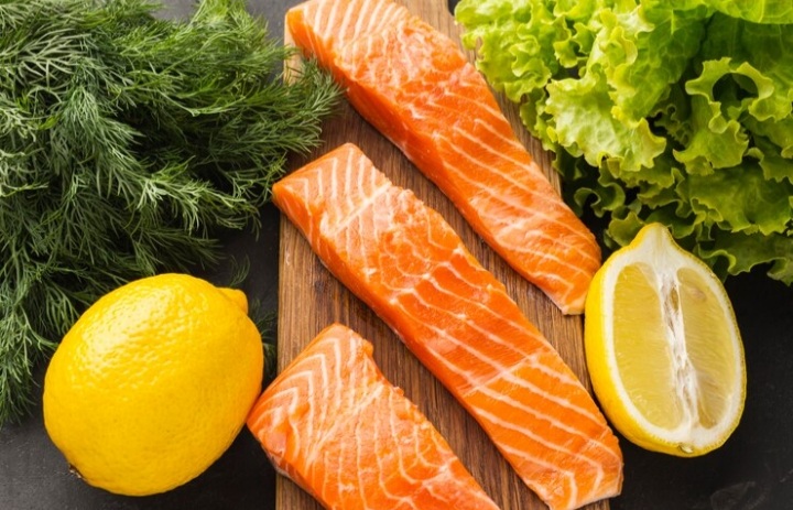 Selanjutnya yaitu makanan salmon karena mengandung banyak protein dan omega. Makanan salmon ini juga memiliki kandungan vitamin D .