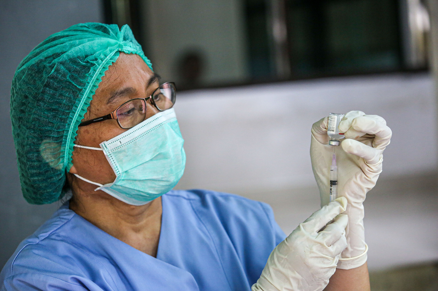 Petugas kesehatan menyiapkan vaksin Covid-19 di Dinas Kesehatan DKI Jakarta, Selasa (19/12/2023).