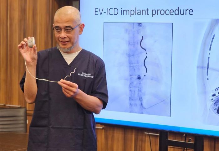 Direktur Klinis Elektrofisiologi dan Perangkat Implan Dr Azlan Hussin menjelaskan Extravascular Implantable Cardioverter Defibrillator (EV-ICD). (Istimewa)